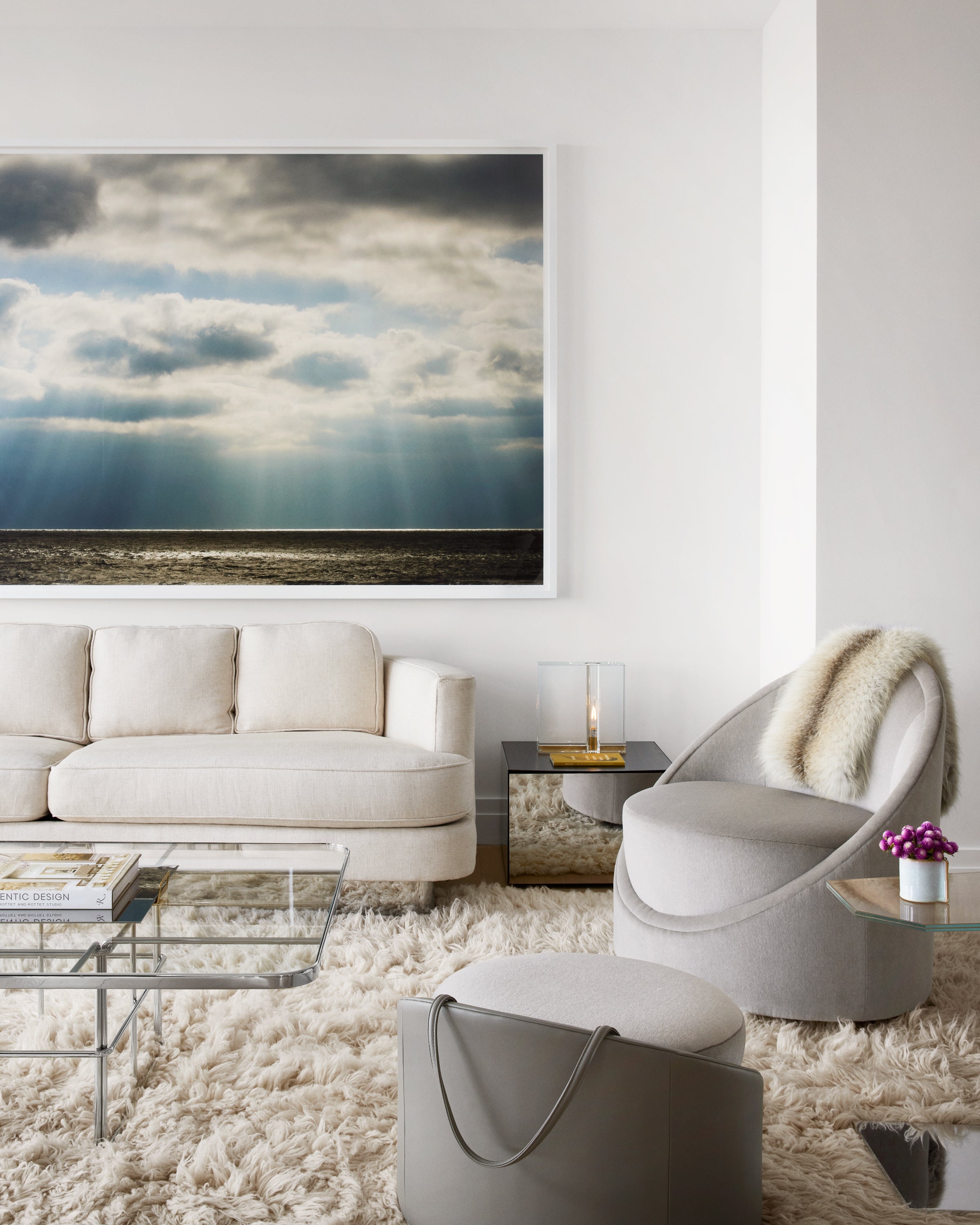 Upholstered in soft mohair, the Artis Chair is a study of the balance of form and function. It plays on sculptural forms with its circular seat and half-moon back and a cylindrical form. For added flexibility, it sits on a swivel base to allow its occupant to turn to engage in conversation or away to take in the view. Ottoman is available separately.